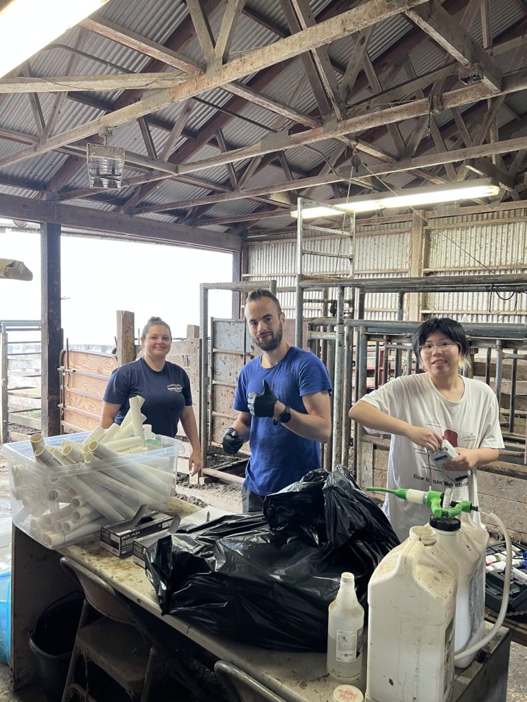 We traveled to the other side of the country to California! This was the start of many collections across the United States, so we can get an accurate representation of the entire Angus population. We are collecting both rumen and fecal samples from every animal to take a snapshot into the microbial populations of these host animals. The bulls utilized in our project have their feed intake recorded as well as their pedigrees documented, so this allows us to make connections with the microbes to feed efficiency and then allows us to predict how well the next generation will perform.