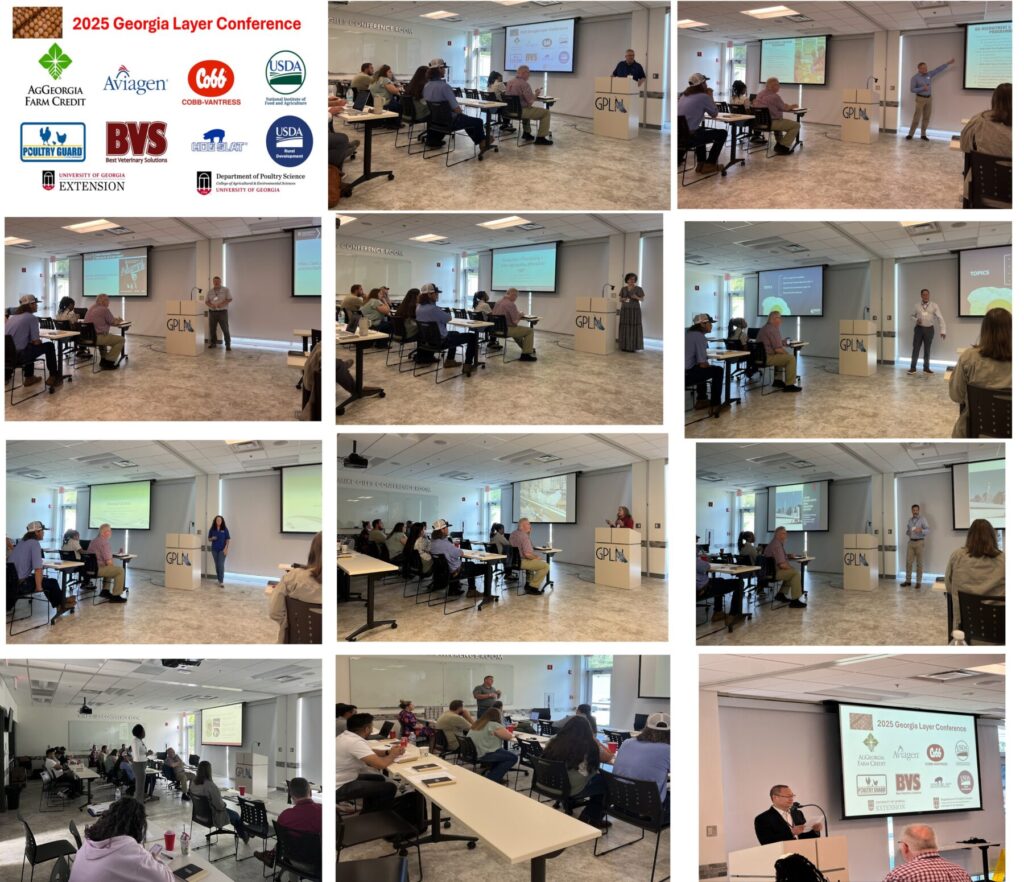 The UGA Poultry Science Extension team just hosted a successful 2025 Georgia Layer Conference at the GPLN in Gainesville, GA on September 22, 2025. We sincerely thank all the speakers for sharing valuable updates and insights on key topics such as laying hen production, the transition to cage-free systems, egg safety, avian influenza outbreaks, mite control, farm biosecurity, layer housing, and more. The Georgia Layer Conference is one of two new conferences that replaced the general “Georgia Poultry Conference” held in previous years. At this event, industry professionals and producers come together to learn and discuss current issues facing table egg and hatchery egg production specifically.