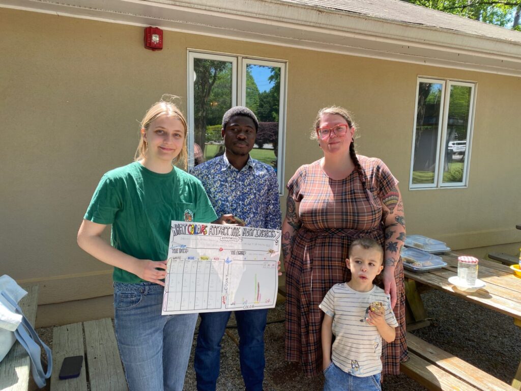 May 2024 – Be an Entomologist for a Day outreach event for 1st-3rd graders at Athens Montessori School. Left-to-right: Piper, Mohammed, Teri, Gregory.
