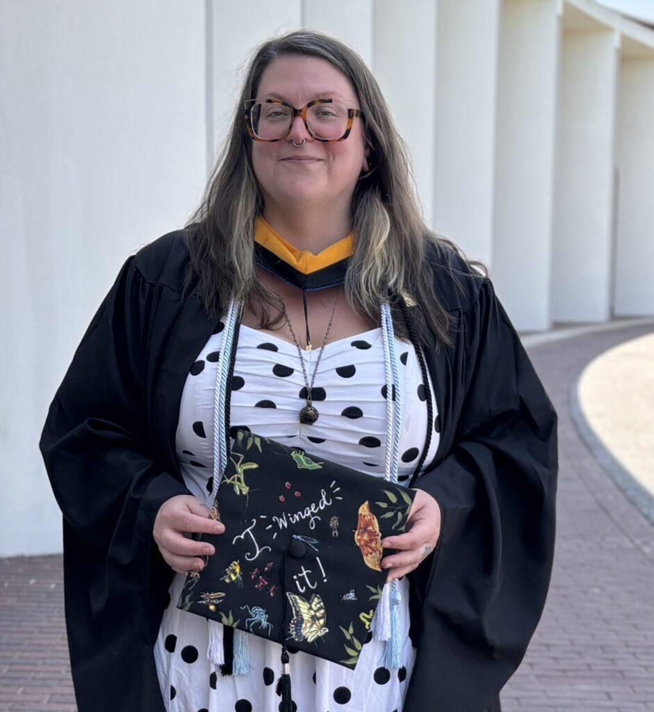 January 2025 – Graduate Student Teri Ramey graduated from Christopher Newport University with her Masters Degree in Environmental Science. Teri was completing the requirements for this degree while starting her PhD at UGA! Congratulations Teri!!!